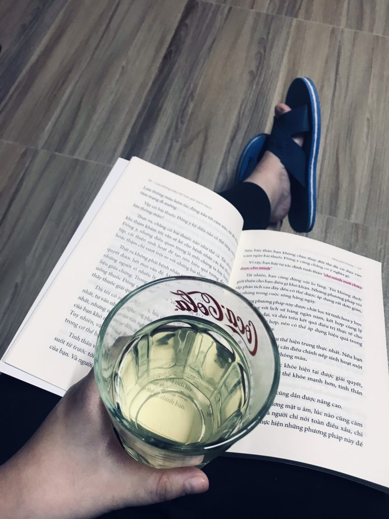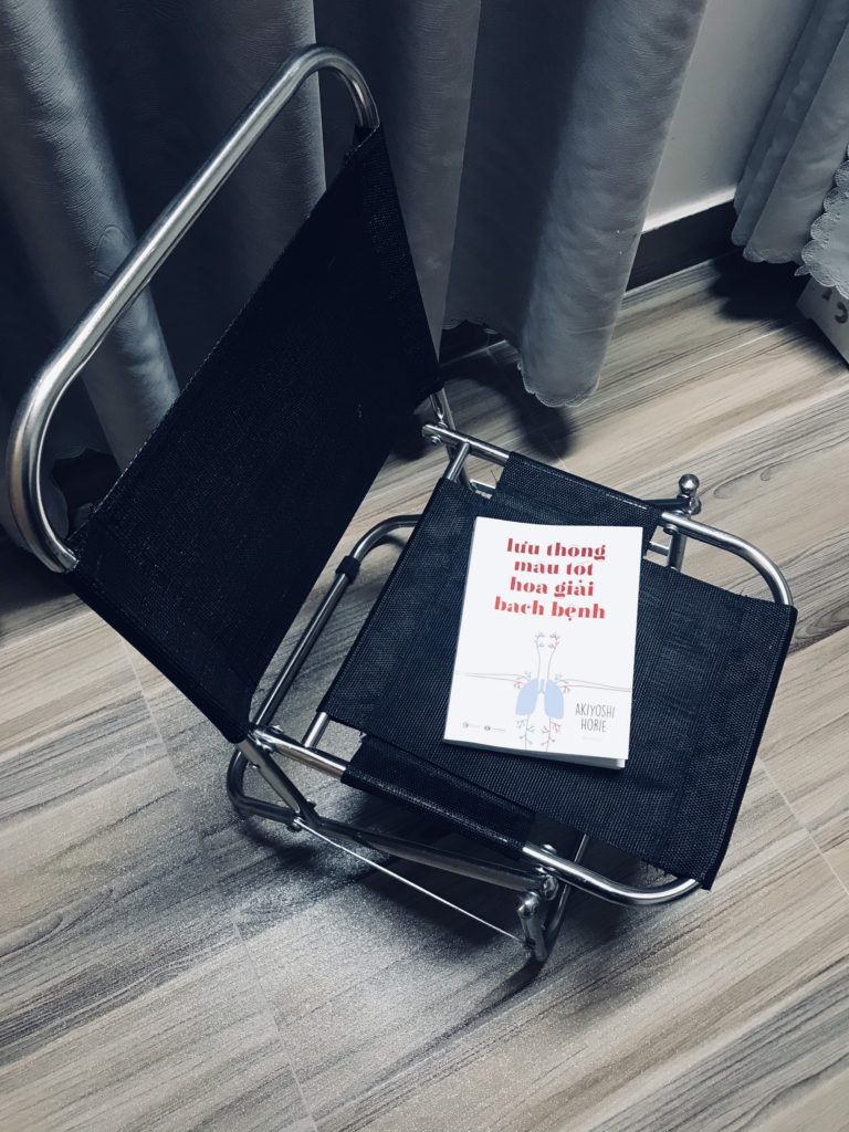 Thay vì nhâm nhi cà phê, mình đang uống nước bồ công anh, mai mốt mình sẽ viết bài về công dụng của loại lá này cho mọi người nhé. À còn sách mình đang đọc là Lưu thông máu tốt hóa giải bách bệnh của Akiyoshi Horie – một bác sĩ y học cổ truyền (Mình cũng sẽ review sau khi đọc xong). Hơi lạc đề xí mình là người không thể làm gì đó ở hoài một chỗ, nên phải di chuyển từ bàn học qua giường, rồi tới cửa sổ, lúc thì đưa cả cái phản ngựa ủi đồ ra đặt laptop cho thay đổi không khí. Dạo này dịch không thể đi cà phê học bài thường xuyên nên cũng phải kiếm gì đó để thay đổi không gian làm việc, thư giãn. À nói dài vậy để dẫn qua cái ghế mình đang ngồi :D. Là chiếc ghế xếp inox mình mua tặng bố uống cà phê. Giá 120K. Hehe. Tối nay mình mang vào phòng để đọc sách, uống nước bồ công anh và nghe nhạc Music Mate. Quá là tận hưởng cuộc sống hơ. Haha. Mà nhìn lại nay mang đôi dép giống đang đi du lịch ở khách sạn ghê 😛