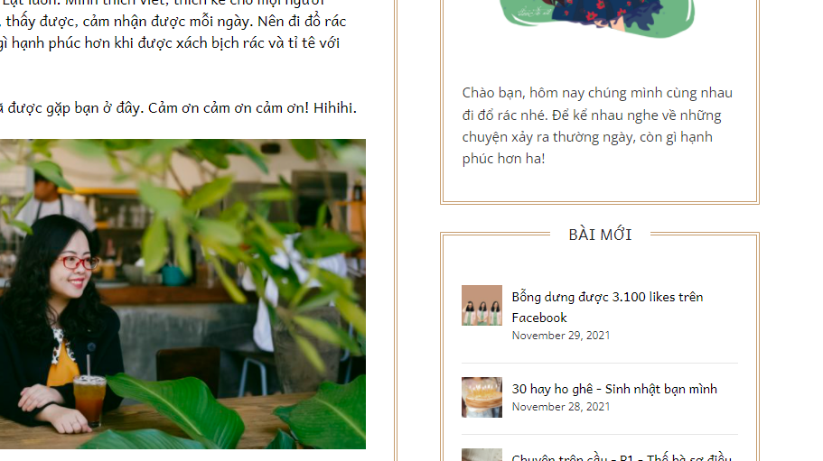 Thậm chí cứ để đó, mỗi tuần lên chỉnh cũng chẳng sao. Đừng bắt mình phải xong ngay trong mấy ngày thì rất dễ thấy khó quá mà bỏ cuộc lắm nè. Mình làm blog này vì bé em bảo trên đời này còn nhiều người thích đọc dài lắm chị ơi. Hihi. Thật vui vui vì mình đã có một nơi để gửi gắm những suy nghĩ, kỷ niệm, bài học của mình trong hành trình “tập làm người lớn”.