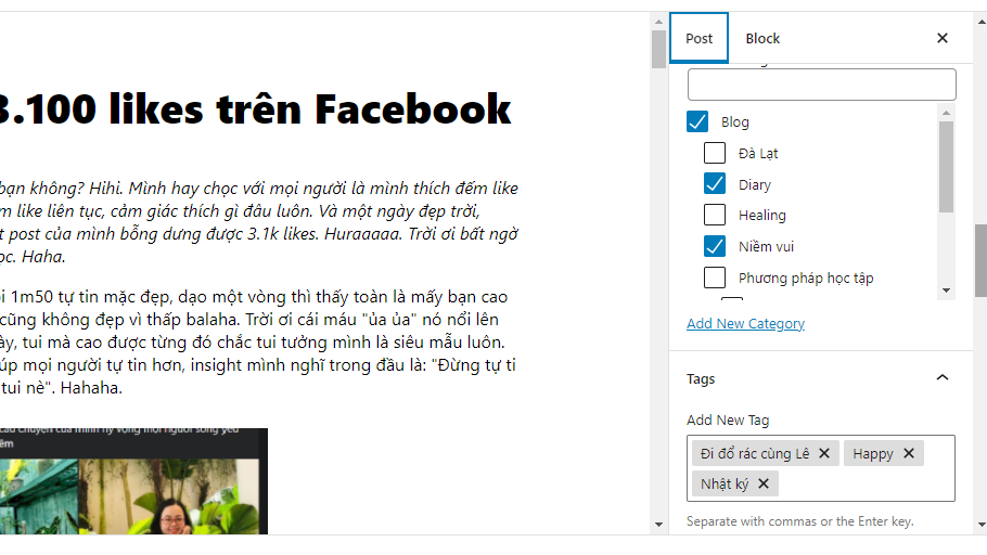 Mỗi bài viết bạn sẽ tạo new post, sau đó lúc đăng thì thêm chủ đề, thêm tag, thêm hình đại diện đồ vô là xong nè.