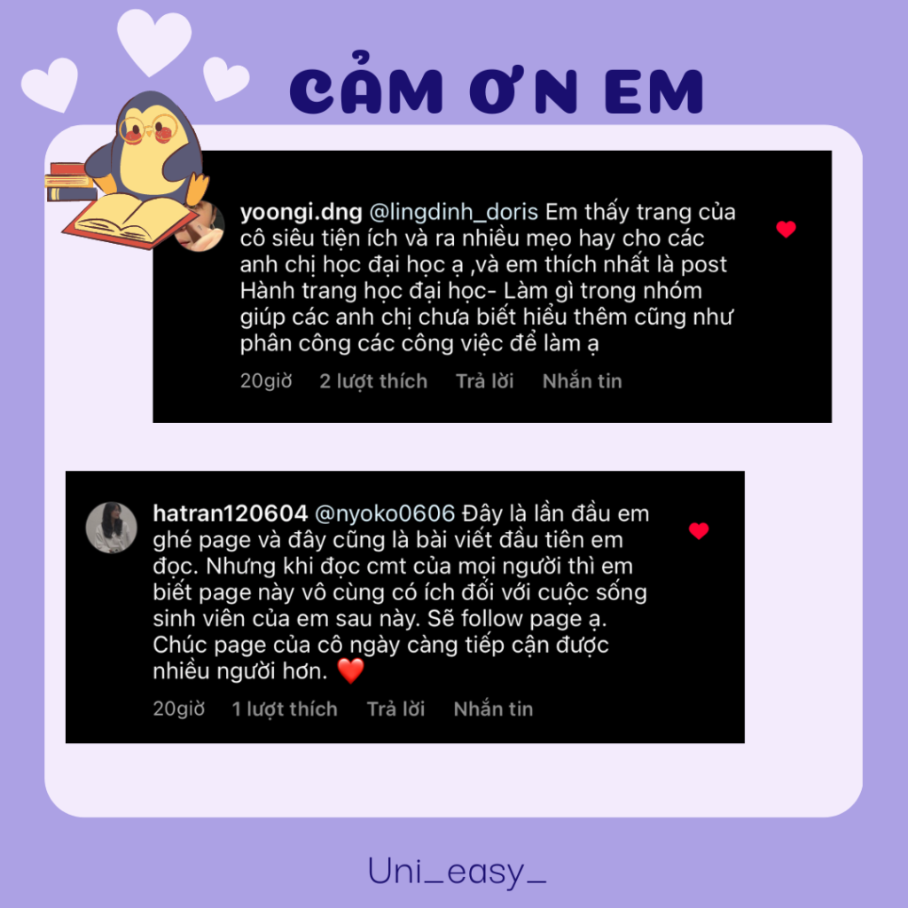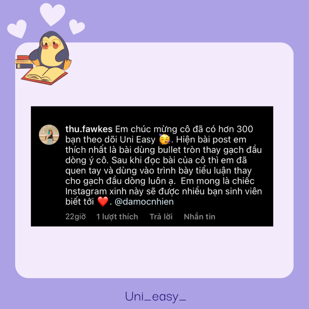 Kỹ năng mềm cho sinh viên đã được mình gửi gắm trong Uni Easy. Vậy là mình đã đồng hành với các em ở page Uni Easy được 3 tháng với 500 lượt theo dõi đầu tiên. Đây là dự án nho nhỏ giúp các em gen Z có cuộc sống ở trường Đại học nhẹ nhàng hơn thông qua các bài viết, video trang bị kỹ năng mềm cho sinh viên.