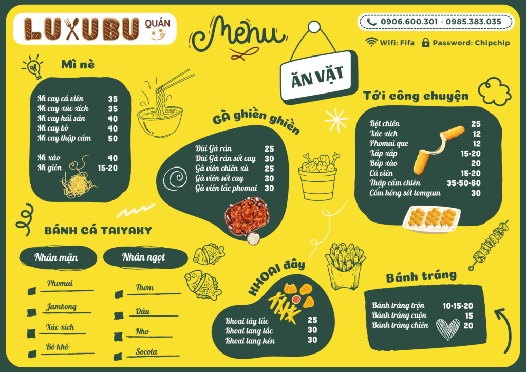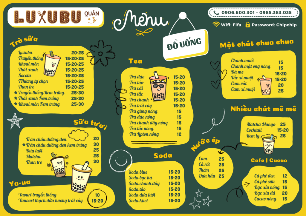 Thiết kế Logo – Menu Trà sữa, Quán ăn vặt
