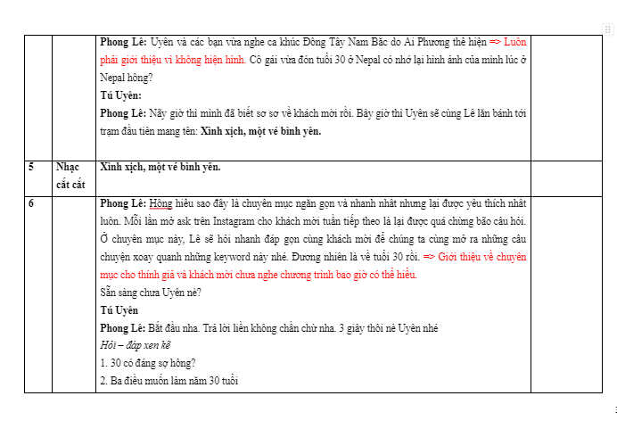 Hạn chế nếu sử dụng ca khúc nào đó trong kịch bản podcast đó là bạn có thể gặp phải vấn đề bản quyền nếu như đăng podcast lên trên Youtube. Tuy nhiên vì là kịch bản mẫu nên mình sẽ trình bày đầy đủ cả 4 mục trên để bạn có thể sử dụng khi cần nhé.
